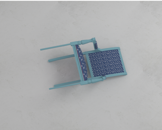 Due to the 2D nature of our method, we are limited to objects that are “flat” from the birds eye view. In order to predict grasping points for more difficult 3D structures such as the chair object seen below, we propose to further extend the approach to incooperate the depth maps from the dataset.