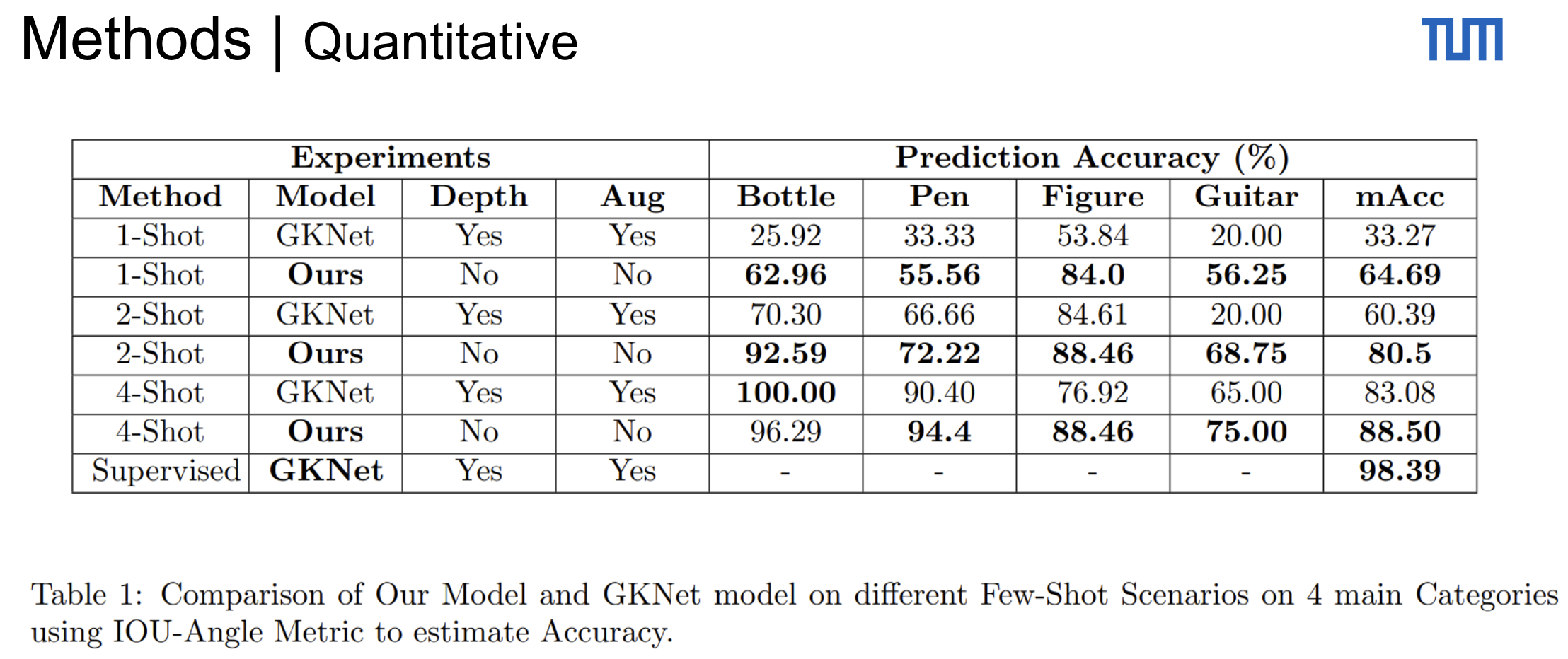 We then train our model and GKNet on 1-4 objects with their corresponding grasps and evaluate on the rest of the per category data. Our results demonstrate that our strong backbone Dinov2 features allow us to significantly outperform the GKNet method in the few shot setting.