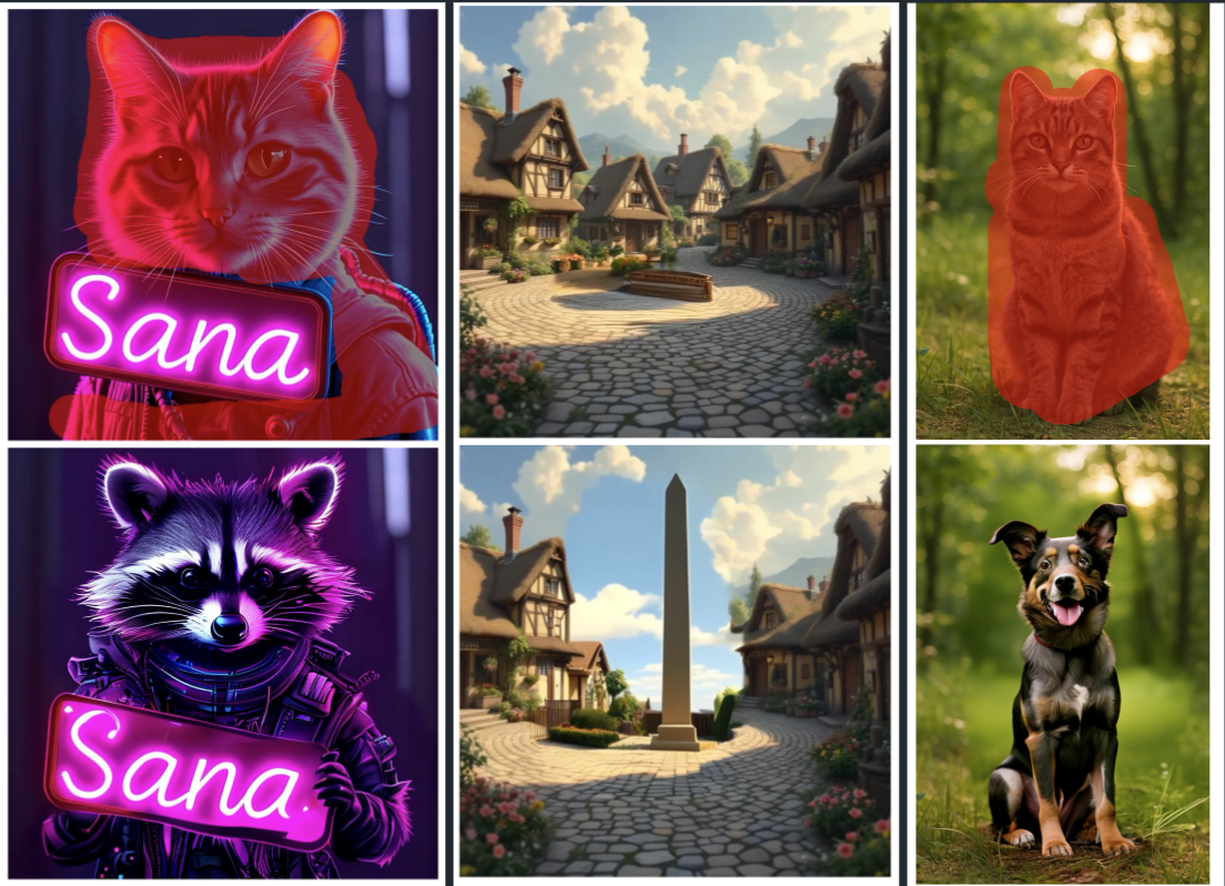 This project implements an inpainting capability, merged into the popular Nvidia SANA repository. It utilizes a masked version of the Flow scheduler, based on the Blended Latent Diffusion method [1], to enable inpainting without the need for additional fine-tuning or training.